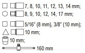 | Piper størrelse | 10, 11, 12, 13, 14, 3/8″, 5/16″, 7, 8, H10, H12, H14, H17, H8, H9 |